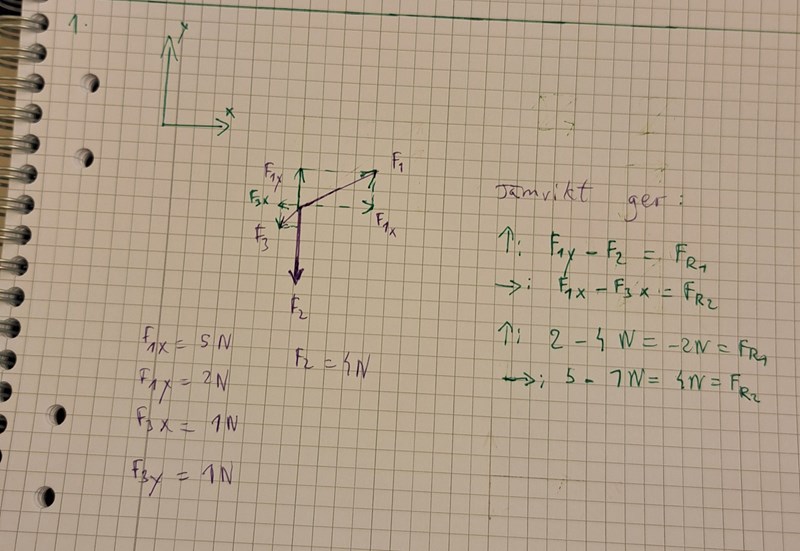 I uppgiften har vi tre krafter som vi kan komposantuppdela: