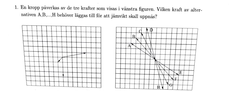 destiny99 skrev:Mrpotatohead skrev:Läs frågan igen. De frågar efter vilken kraft som krävs för jämvikt. Alltså måste det vara en lika stor kraft i motsatt riktning.