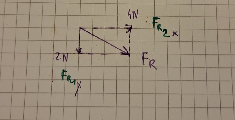 Ja jag har läst frågan. Men min figur med 3 N åt höger och 2 N nedåt är ej i jämvikt alltså?