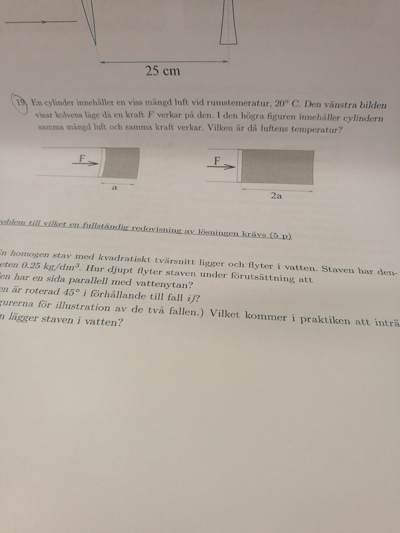 Pieter Kuiper skrev:Mahiya99 skrev:Det verkar som att det är samma kraft men vi vet ingenting om tryck 1 och tryck 2 dvs p1 och p2. Jag vet ej om man ska anta att p1 är 103 kpa och p2 är vätsketrycket dvs p2=103+råluft*g*h