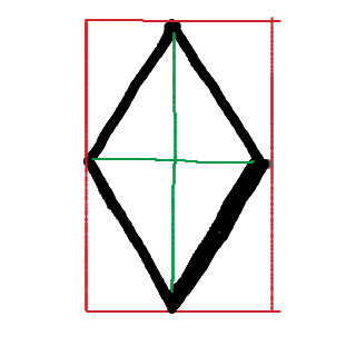 Rita rombens diagonaler, och rita in romben i en rektangel, där rombens hörn ligger på mitten av rektangelns sidor: