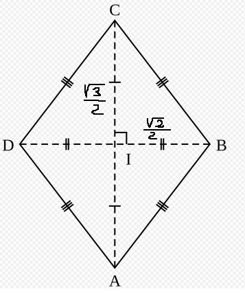 Jag är inte med på hur du tänker där. Du har ritat två olika rätvinkliga trianglar med diagonalernas längder som hypotenusor.