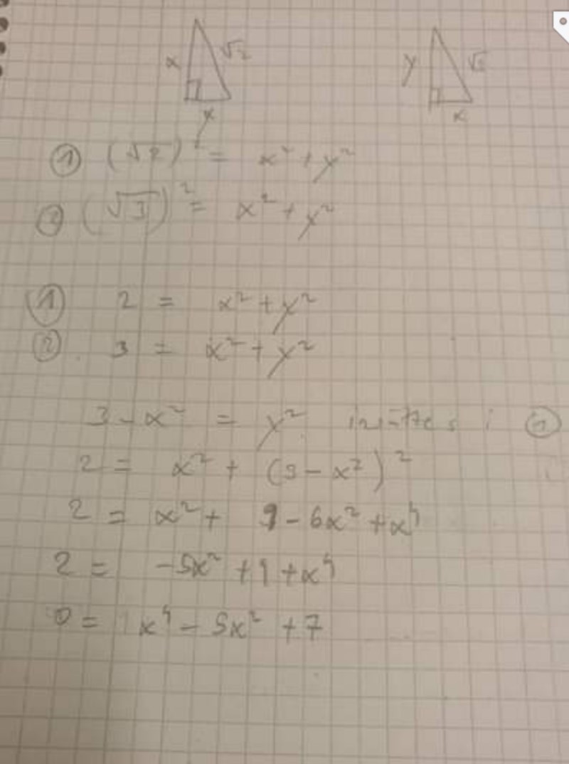 Louis skrev:Jag är inte med på hur du tänker där. Du har ritat två olika rätvinkliga trianglar med diagonalernas längder som hypotenusor.