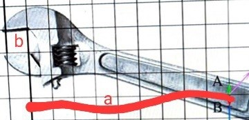b är bredden på muttern. a är det vågräta avståndet från krafterna A B C till muttern. Om.du ska dra åt en mutter men inte är stark nog kommer muttern inte att röra sig.
