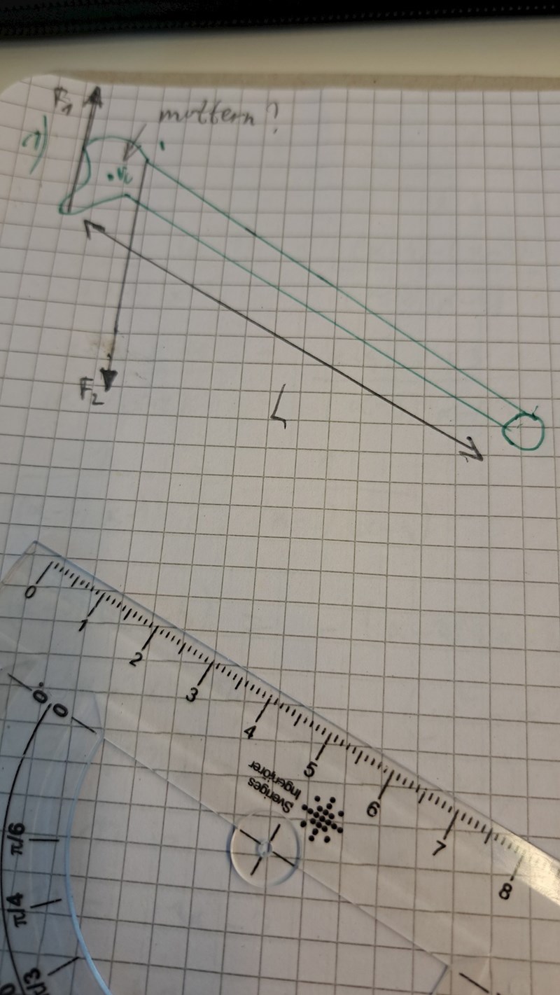 Okej så vi har två krafter bara. De andra vet vi ej ännnu för de är sökta eller? Jag har ej riktigt förstått hur man ska utöva kraftmoment i den här uppgiften