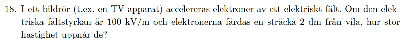 Mafy 2008 uppgift 18 - Elektroners hastighet i ett bildrör