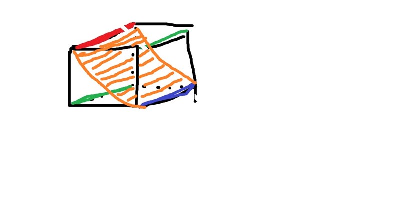 Den här uppgiften handlar om läsförståelse. Det står att planet skall gå genom två kanter som är parallella med varandra, men inte innehålla någon av kubens sidoytor. Jag utgår från den röda kanten på bilden. Det finns tre kanter som är parallella med den röda, två gröna och en blå. Om jag väljer någon av de gröna som den andra kanten, så kommer planet att innehålla en sidoyta - inte tillåtet, så jag måste välja den blå kanten. Då kommer snittytan vara en rektangel med sidorna a respektive a.