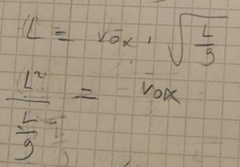 - En ekvation som beskriver hur långt bollen då har kommit. Det ger dig ett samband mellan t1, L och v0x.