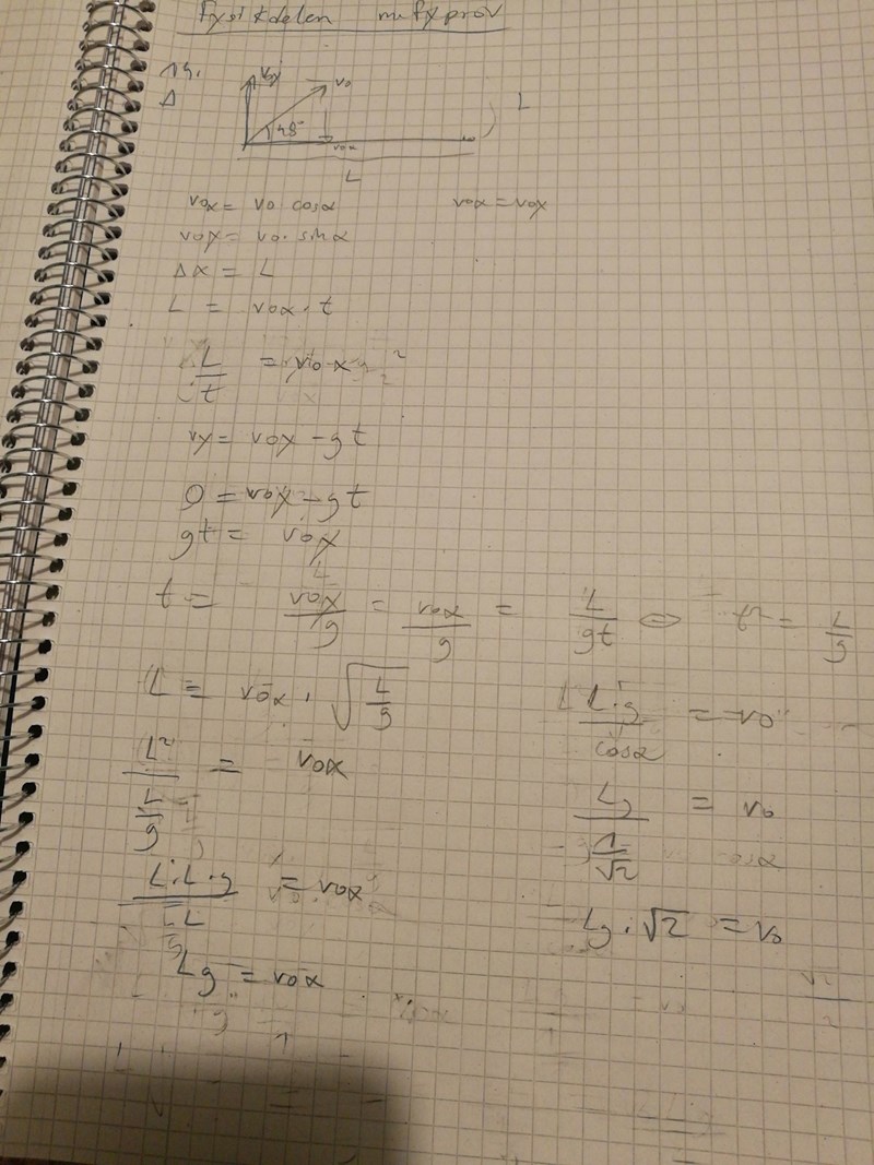 Yngve skrev:Nej, jag menar att när det har gått t1 sekunder så når bollen sitt högsta läge. Då her inte bollen landat ännu, så sträckan bollen har färdats i x-led kan ju inte vara L.