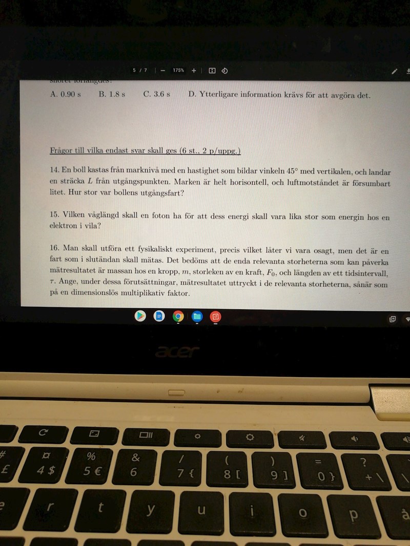 Ditt tidigare svar har alltså enheten m2/s2, när det egentligen borde ha enheten m/s eftersom det är en hastighet som efterfrågas.