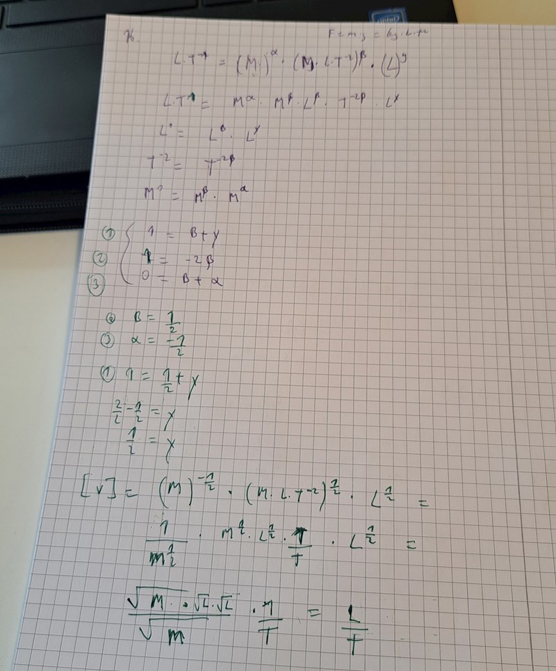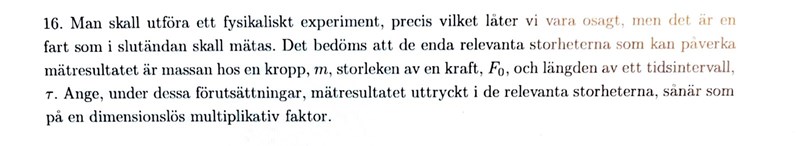Ok det var bra att veta.  Så jag skulle egentligen ha skrivit hastigheten som =F0*taw*m? Men hur kommer man på att man ska dela med m? Jag gjorde dimensionsanalys för att veta exponenterna och därifrån hade jag fått reda på om vi ska dela på m