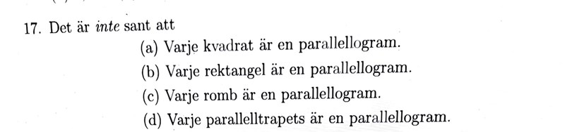Varför är d) rätt här? Jag tycker det ska vara a) för att jag kan ej se hur varje kvadrat är en parallellogram stämmer.