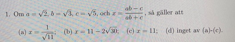 Jag har svårt att se hur man skulle kunna förenkla uttrycket i HL mer än såhär. Tydligen ska alternativ b) vara rätt men förstår inte hur jag ska kunna se snabbt på ett prov att är lika med ekvationen ovan.