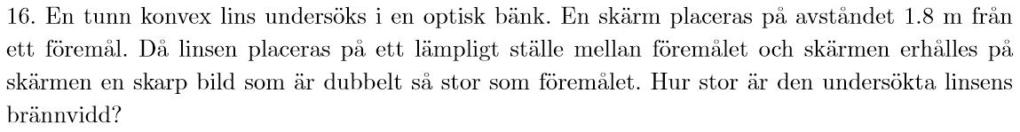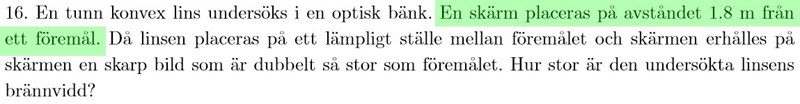 Avståndet mellan skärm och föremål är 1,8 m. I den figuren är alltså a+b=1,8 m.