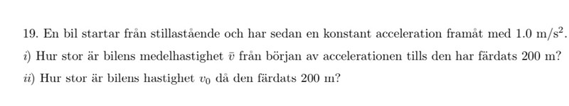 Annanspizza skrev:Ture skrev:e vanliga sambanden mellan sträcka, hastighet, acceleration och tid brukar vara användbara. Om manbara kommer ihåg: