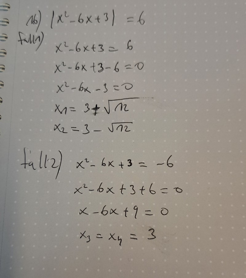 Jag menar man kan dela upp ekvationen i fall. Precis de söker efter antal lösningar.