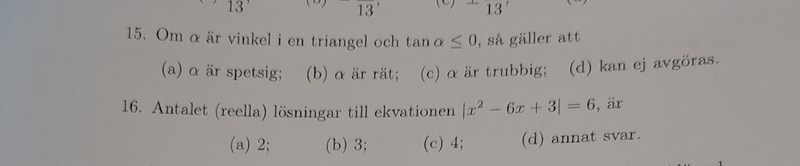 Det blir 4 eller två fall vi ska undersöka här. Men jag fick bara att det stämmer för endast två fall och då fick jag a) men det är fel.