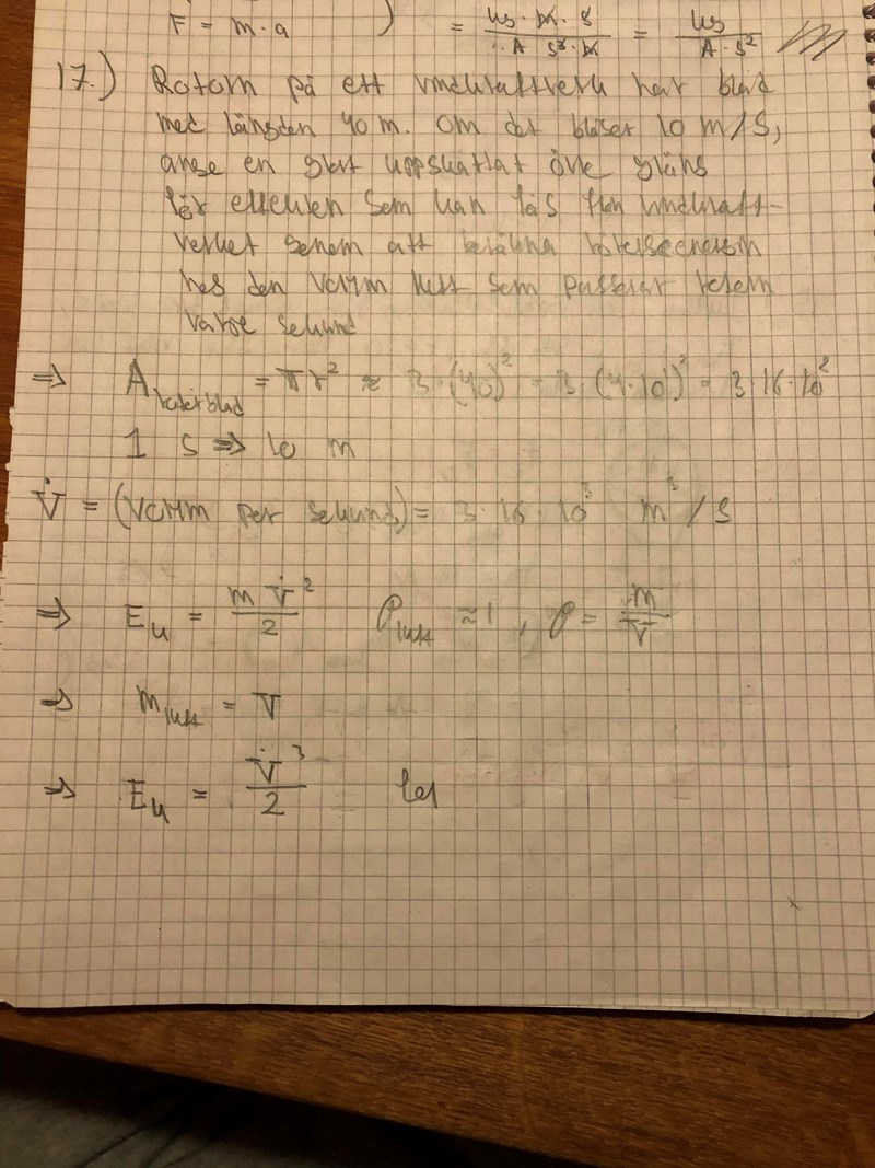 Kolla igen på sista raden. Du skriver att m_luft=V men det V:t är inte samma som det V_prick du använde i hastigheten. Slututtrycket blir därför fel. Skulle rekommendera att du kanske använder lilla v för hastigheter och stora V för volymer.