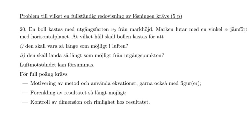 sen är det "bara" att kombinera ekv 1 och 3 samt sätta in i 4 och förenkla så får man så småningom t sfa beta, därefter ska du söka största värdet på t! Så långt uppgift i, lös den så tar vi ii därefter!