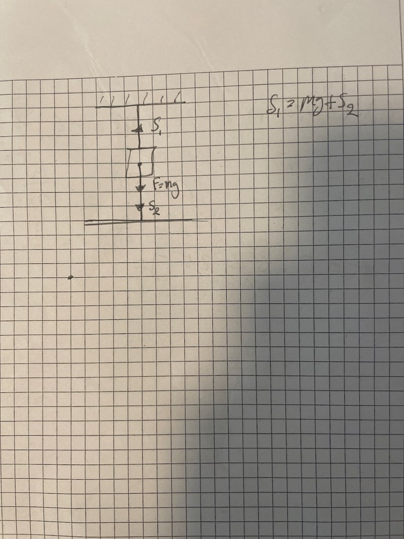 Om du spänner repen så att S2 = 10 N så blir S1 = 10 N + mg.
