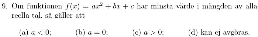 Ture skrev:Jo a ska vara positivt för att funktionen ska ha ett minsta värde.