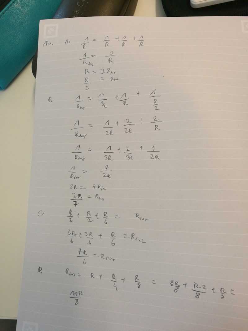 Pieter Kuiper skrev:I C) och i D) adderar du motstånden som om de alla är i serie.