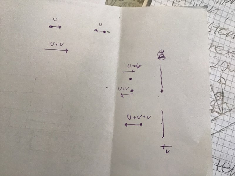 Förlåt mig, jag är dum, jag menade u+v+v efter stöten när vi INTE betraktar den tunga kroppen som stillastående och när a=0, dvs: