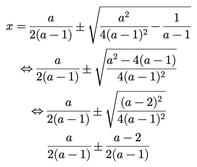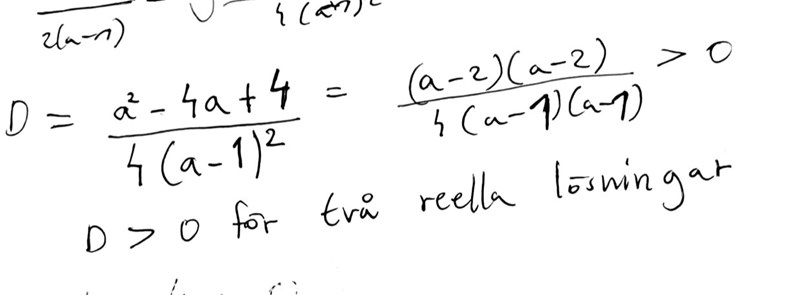 Jag fick fram detta men jag fattar ej hur a=1 är en lösning när den är odef i nämnaren?-1.jpg?width=800&upscale=false)