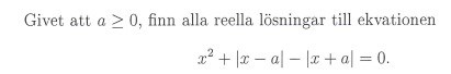 x2 + |x-a| - |x+a| = 16 + 4 - 12 = 8, inte 0, vad hände?
