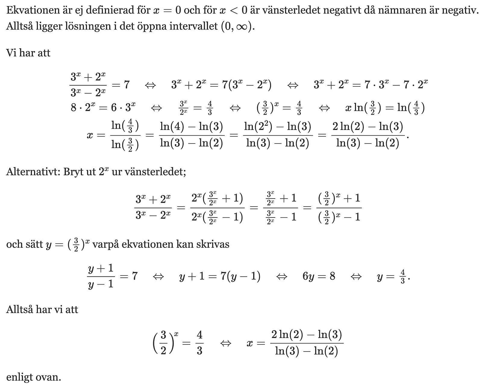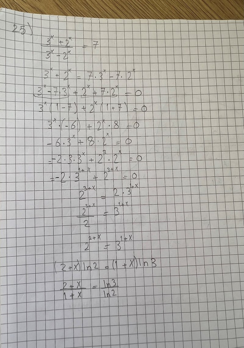 Tack, då bli x=2ln2-ln3/ln3-ln2