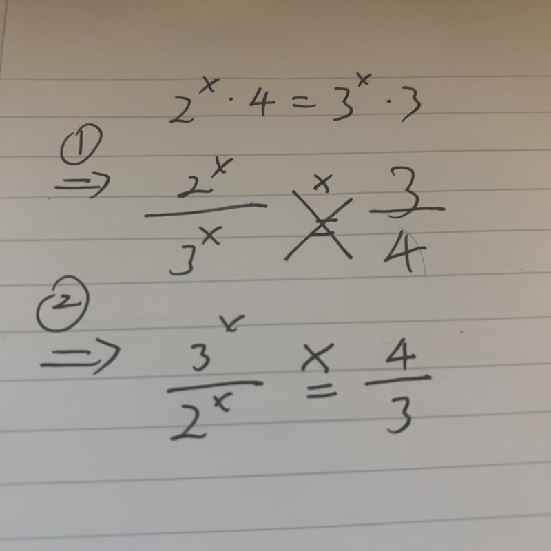 Det är ju exakt samma sak så länge resultatet av diagonal multiplikation är samma,dvs 2^x *4 = 3^x *3