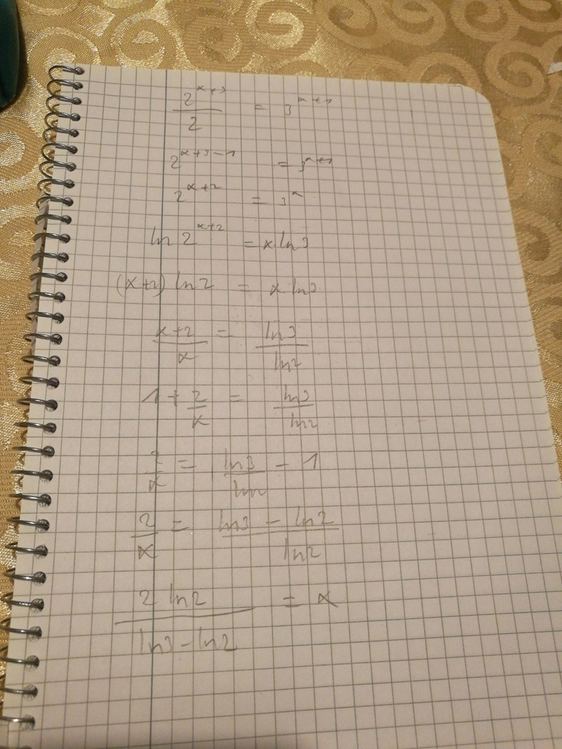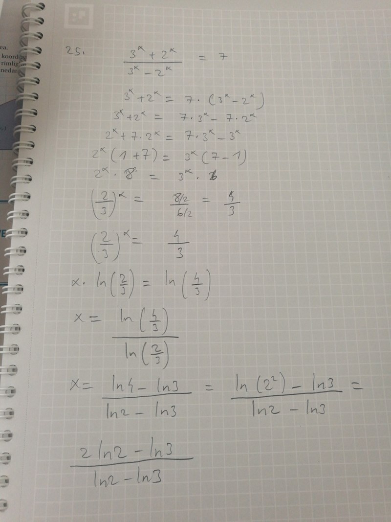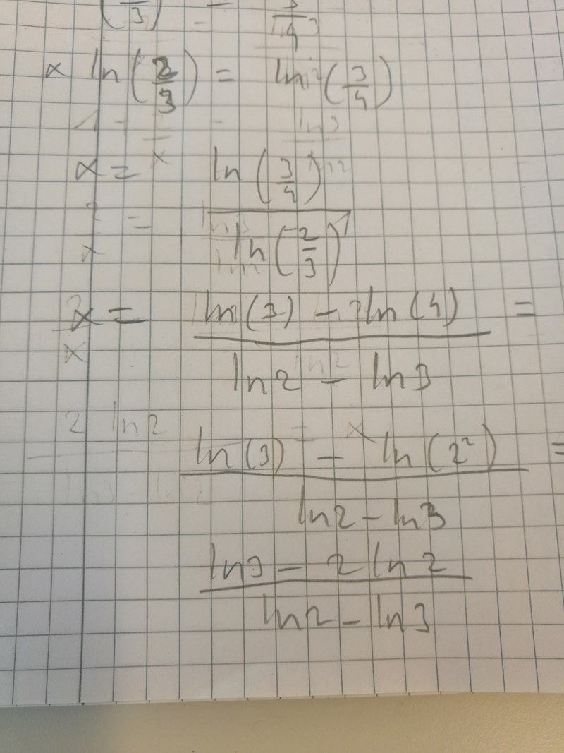men om man skriv som x=(ln3-2ln2)/(ln2-ln3) på provet räknas det som rätt också va?? I slutet det är samma sak...?