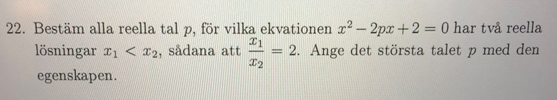 får svaren p1= 3/2 och p2=-3/2, när jag testar lösningarna visar det sig att p2 är falsk.