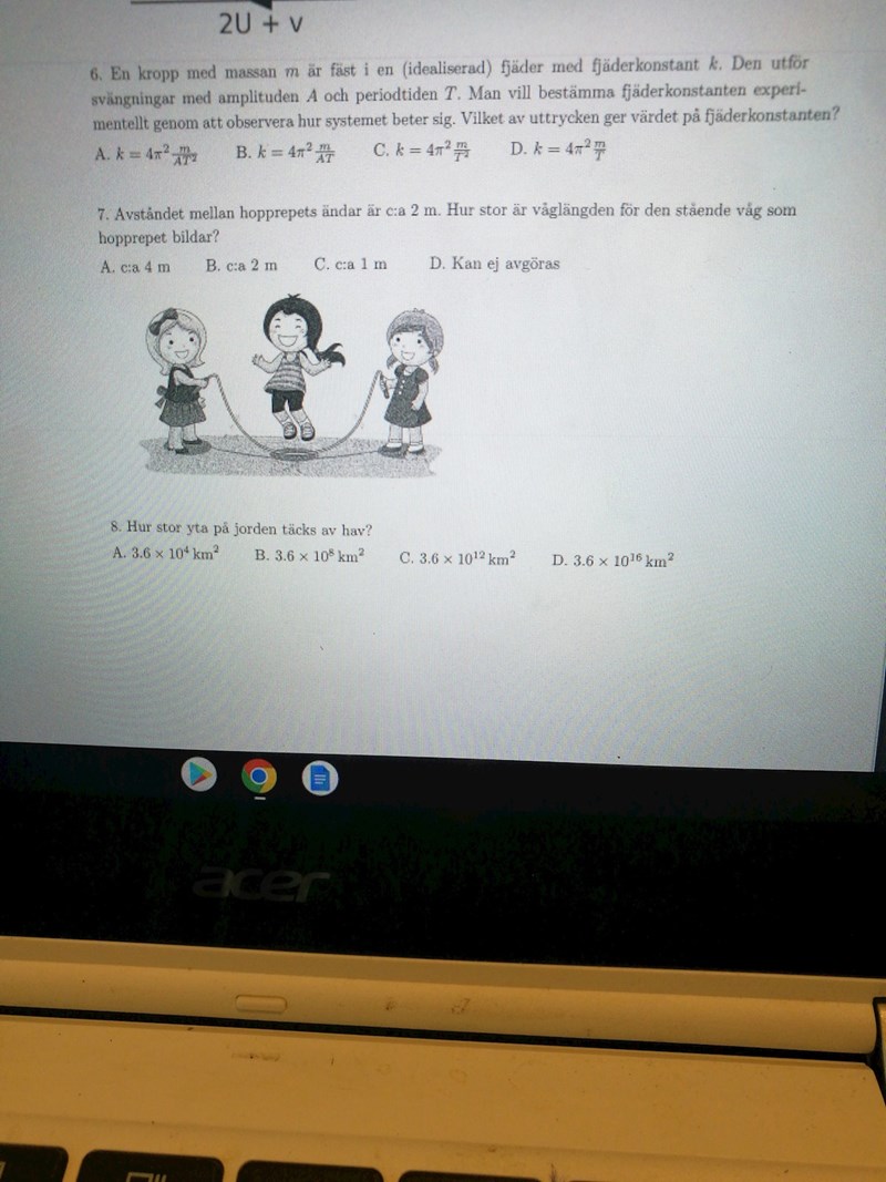 Enligt bilden ser det ut som att vi har 2 noder och en buk och då tänker jag på L= lambda/2 och om avståndet är 2 m så borde våglängden vara 4 dvs 2*2= Lambda?