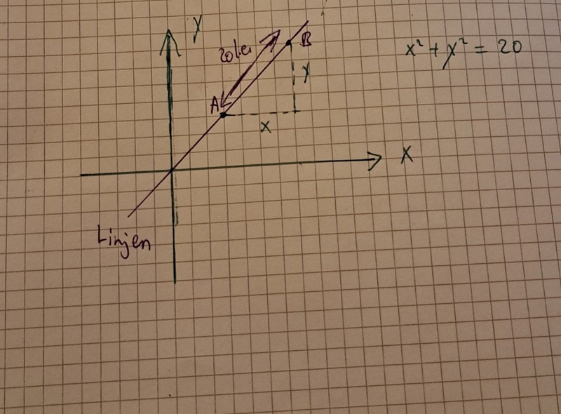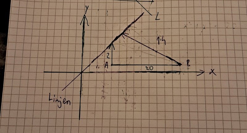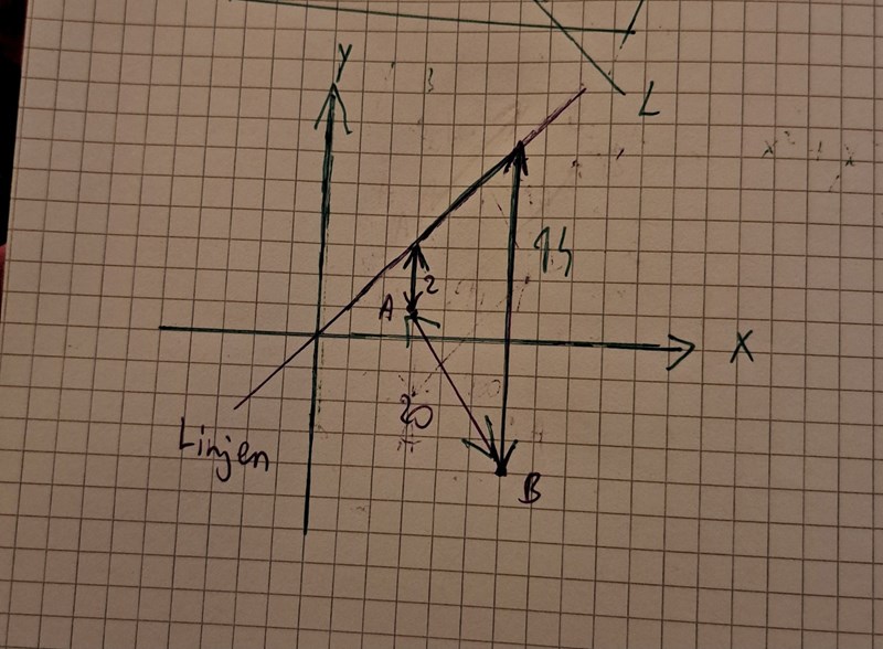 I din senaste bild ligger A och B fortfarande på linjen. Det står i uppgiften att de har vissa avstånd till linjen.