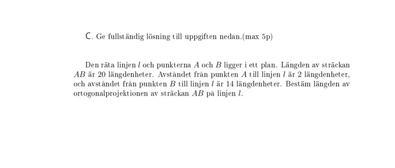 "Om du tänker dig att du belyser sträckan AB med parallellt ljus som är vinkelrätt mot linjen L kommer den ortogonala projektionen på L att vara skuggan från sträckan AB"