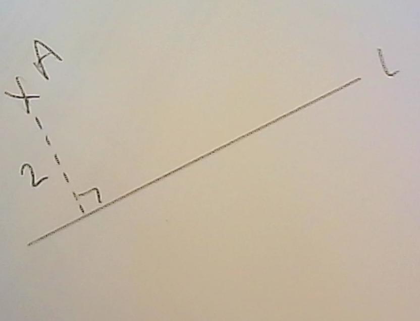 Se bilden nedan, där  l är linjen och den streckade linjen symboliserar avståndet mellan linjen l och punkten A