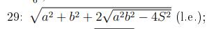 c2=a2+b2-2ab1-4S2a2b2c=a2+b2-2ab1-4S2a2b2