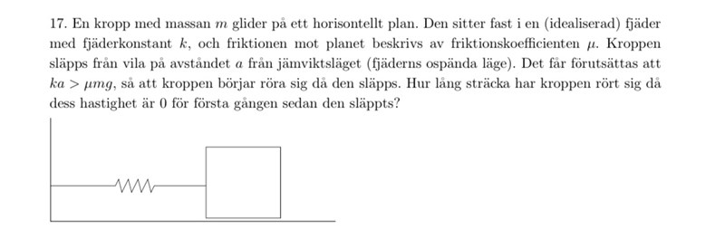 Då kan vi formulera ekvationen 0,5ka2 = 0,5kb2 + my*mg(a+b)