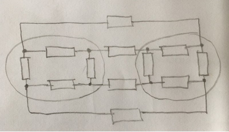 Sedan förbinder du de två sidorna med resistanser enligt min figur.