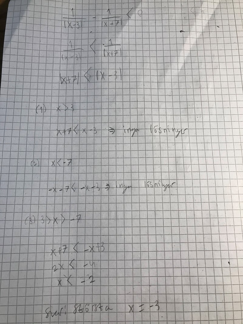 Svaret ska bli att största heltalet x kan bli är -3 och jag antar att om x måste va mindre än -2 så kan man bara anta de heltal som kommer under de heltalet ifall man löser ekvationen på sättet jag gjort ?