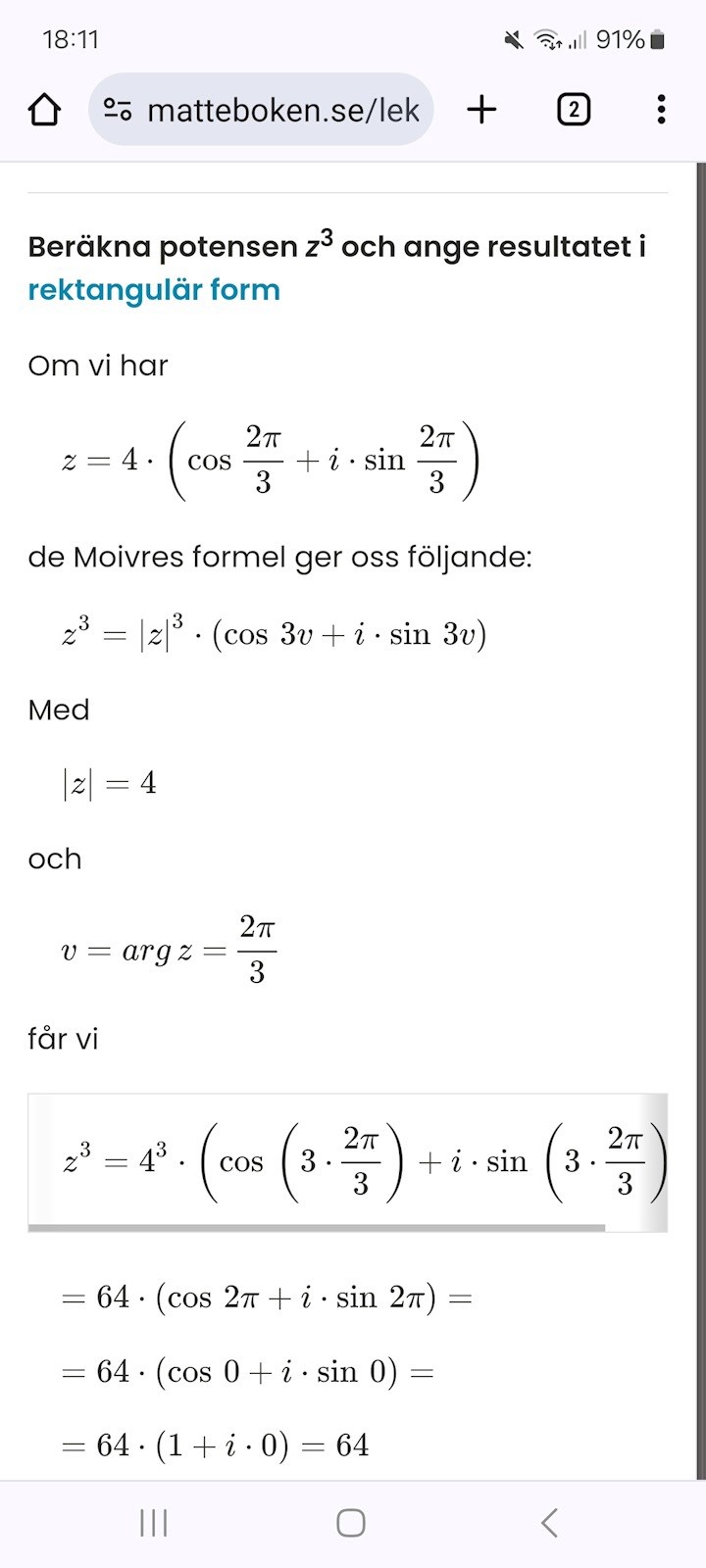 Vid upphöjning till 3 höjs beloppet med 3 och argumentet multipliceras med 3