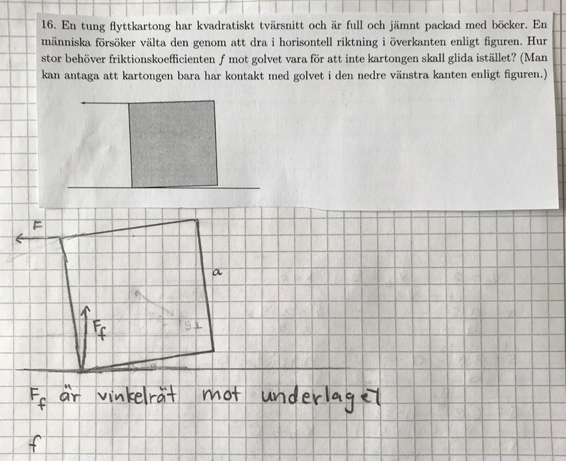 Jag ritade Ff riktad åt höger då jag tänkte föremålet ramlar åt höger typ dvs att någon putar den åt den riktningen. Kan man tänka så eller är det tvärtom?