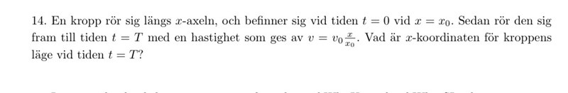 14. En kropp rör sig längs x-axeln, och befinner sig vid tiden t = 0 vid x = x0. Sedan rör den sig