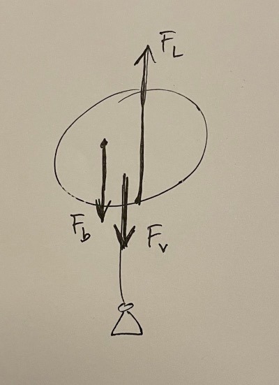 Jag förstår fortfarande ej varför du kallar Fv för vikten.. Det står bara still i mitt huvud faktiskt när jag ser olika namn på dessa figurer. Jag valde att behålla FL som lyftkraft och sedan kalla kraften för ballongens tyngd för Fb och sedan kraften från luften för Fluft