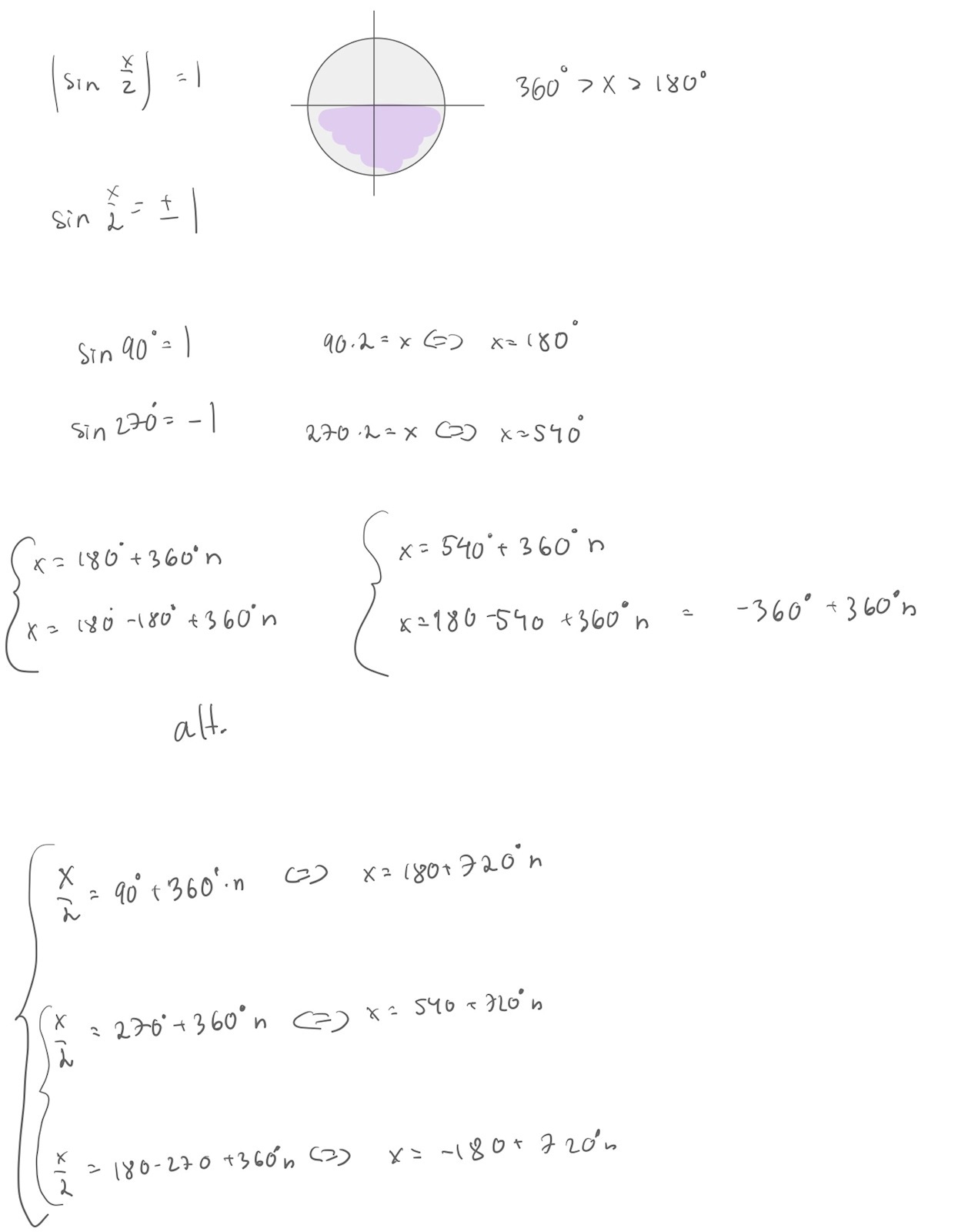 x = -180 + 720n-180 är en lösning. 180 är inte en lösning, för det tillhör inte intervallet.