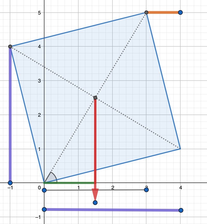 Om man delar upp mgmg blir det nog enklare att dela upp i komposanter mot fyrkantens hörn.