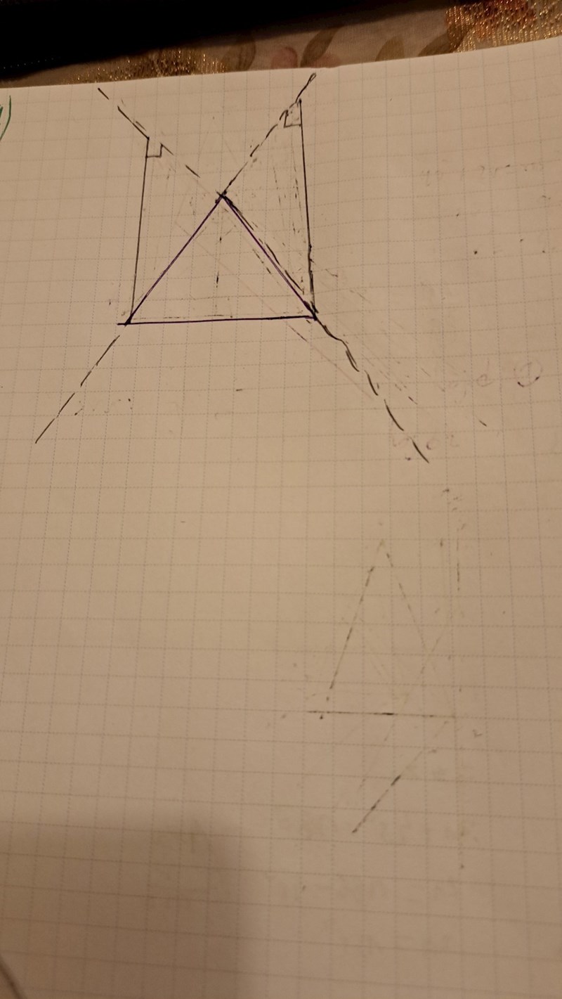 Okej jag läser den . Jag vet ej varför det ser ut som att du har ritat bilden som om höjderna skär varandra under en tredje höjd. Isåfall går det emot uppgiften som säger att höjderna ej skall skära varandra utan deras förlängningar ska göra det.