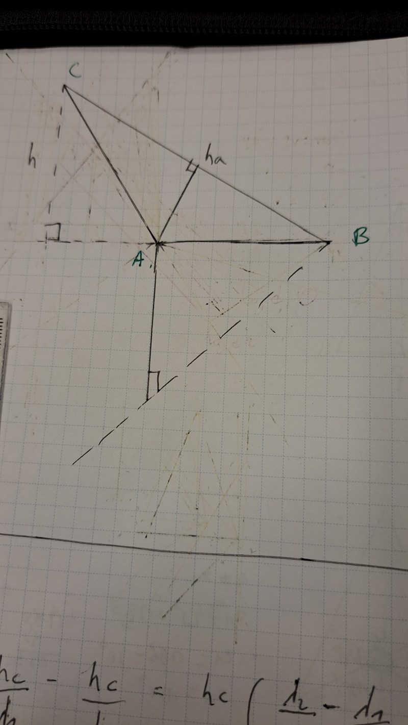Okej nu är jag med på hur du tänker. Jag satt ut sidorna a ,b och c och förlängde lilla c och lilla b med höjderna hb och hc