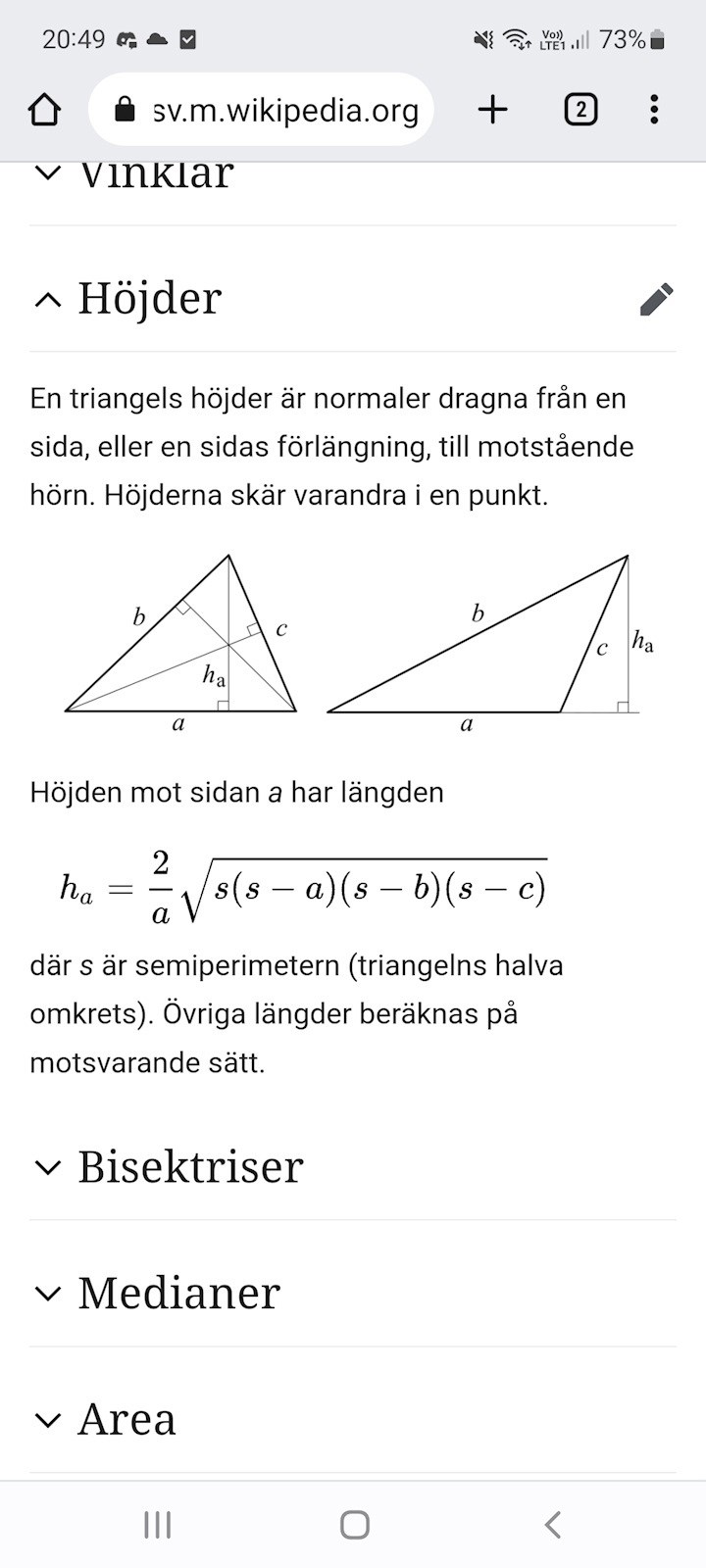 - Är du med på att H2 som du har ritat den inte möter B2 i rät vinkel och att H2 därför inte är en höjd I triangeln?